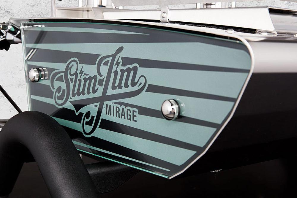 The Mirage Slim Jim design is sandblasted in 10mm thick glass side panels.